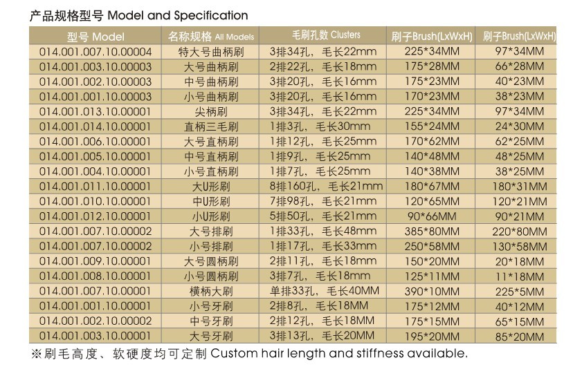 - 防靜電毛刷類型:牙刷型(橫柄)、油漆刷型(直柄)、U型(彎柄)等